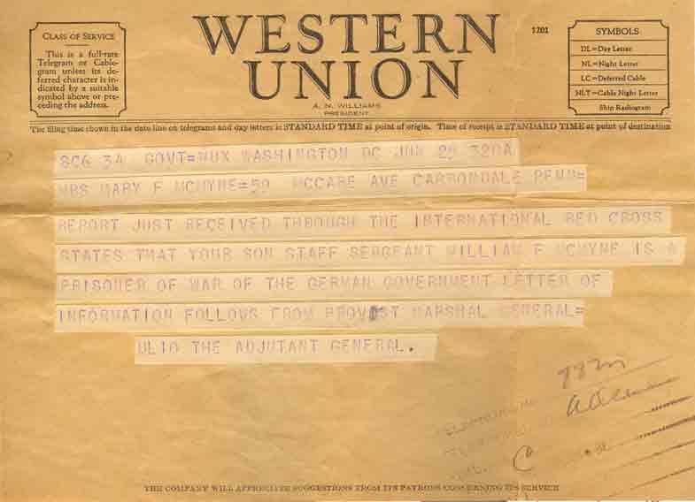 are at war, the War Department is helpless to expedite such reports." My father's status was reported in the local